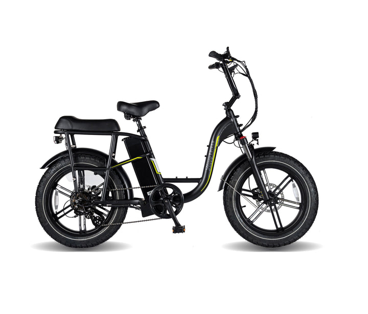 The same powerful 750 Watt Motor, 48V Lithium-Ion Battery, five Pedal Assist (PAS) levels with half twist throttle provide all the power you need to take on long distances and hilly terrains. Cutting edge Hydraulic Disc Brakes creates an extra level of comfort and peace of mind while you are on the road.