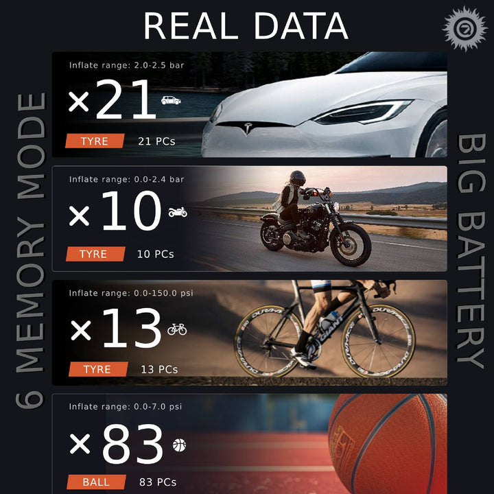 - Quick Tire inflation with automatic modes for preset PSI & automatic shutoff.