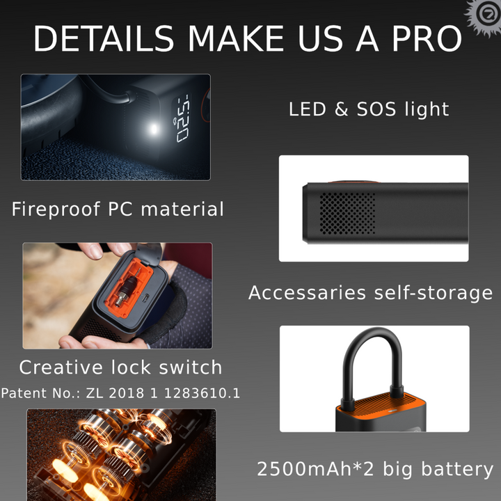 QI Portable Inflator - press a button and within 30 seconds your tire will be inflated.